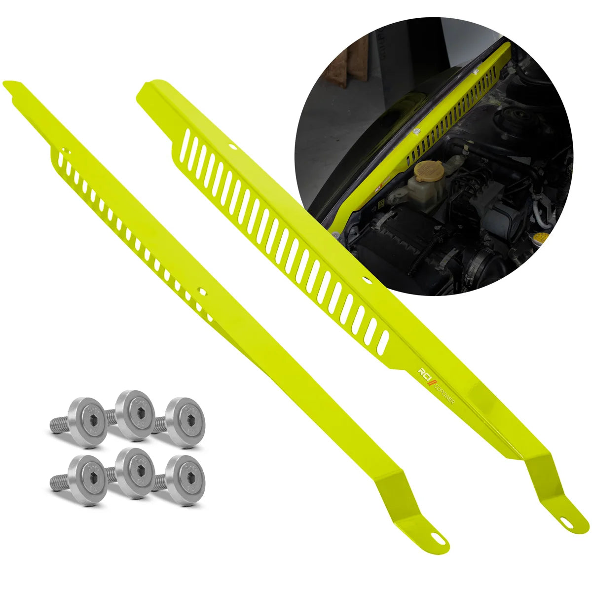 Fabricado em inox com pintura epóxi, o kit oferece acabamento estético nas laterais internas do cofre do motor, substituindo os forros plásticos e destacando o visual do projeto. Disponível nas cores vermelho e amarelo neon, com instalação simples e encaixe sob medida.